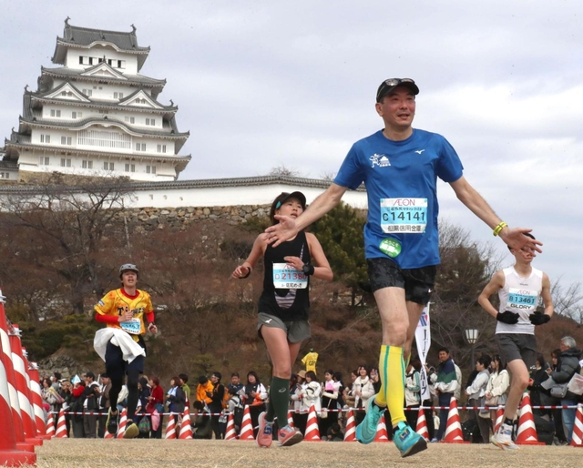 世界遺産姫路城マラソン2026(神戸新聞社など共催)が22日、姫路市内で開かれた。約1万3千人が春めく城下町を駆け抜け、沿道の声援を受けてゴールを目指した。 制限時間6時間のフル(42・195キロ)は、出走した8736人のうち93・7%が完走した。男子は島津裕太選手(24)=NDソフト=が2時間1
