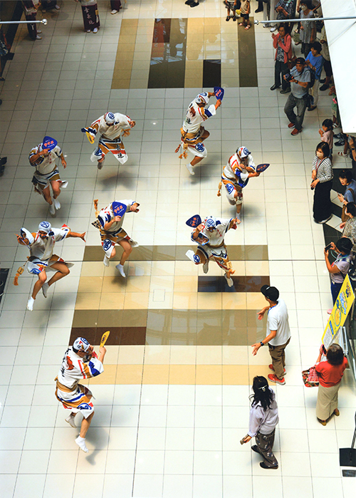 つるりとした床の上で踊る男性たち。よく見ると皆、浮いています。何か不思議な空間に迷い込んだ感じにさせられます。(キヤノンEOSR6 24~105ミリ 絞りf5・6 1600分の1秒)