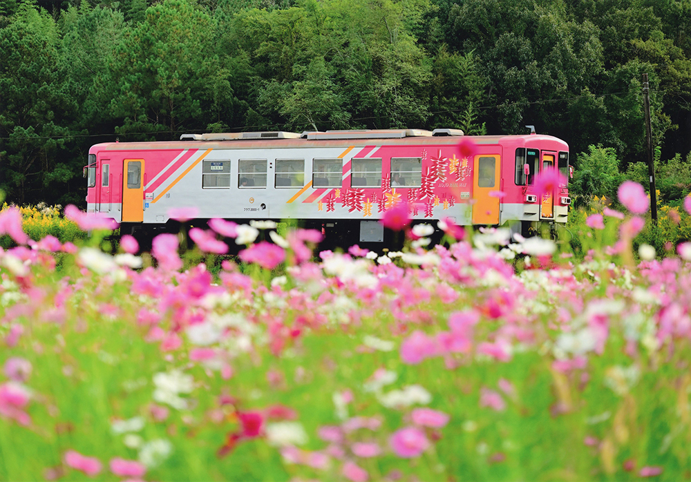 ピンク色に染まった畑の中に一輪のヒマワリ。意外性に加えて、望遠レンズのぼけ味が生きました。(ソニーα7RⅢ 150~500ミリ 絞りf6・7 800分の1秒)