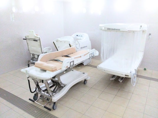 車椅子やストレッチャーのまま入浴可能なミスト風呂や、ウルトラファインバブルを活用した最新設備、座位で使えるオープン型シャワーなどを備え、利用者だけでなく、介助者にも優しい設計が特徴です。