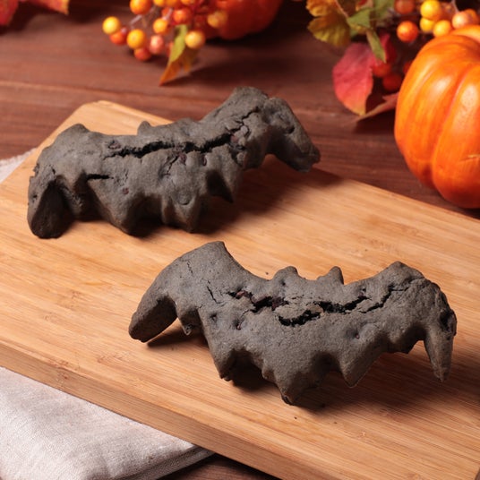 ブラックココアとチョコチップを混ぜ込んだ、ほんのりビターなスコーンをコウモリ型に焼き上げました。