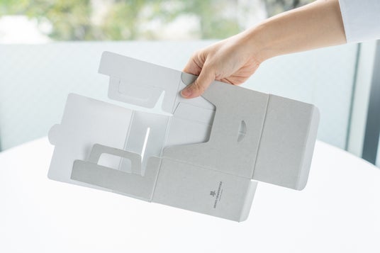 古紙を70%以上使用した段ボールを使用し、再利用可能な素材を採用することで、包材のエコ化を図っています。さらに、包材の軽量化として、通常パッケージの【フィナンシェ5個入】と比較して紙の使用量を43%削減することができました。また、お客様の箱廃棄の手間削減として、箱は4ステップで簡単に折りたたんで捨てることができるように設計。手提げ袋分の資源に配慮し、箱に持ち手をつけることでショッパーをつけずに販売出来る仕様にいたしました。