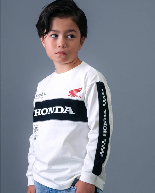 鮮やかなWingマークをあしらい、スポーティな印象に仕上げたトレーナー。袖の切り替えにはゴールライン風のプリントを施した、「Honda」好きにはたまらない1枚です。