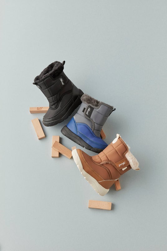 靴内部の素材にはボアを使用。さらに、中敷きにはアルミ素材を施した防寒ブーツ専用インソールを採用しました。側面からの冷気侵入防止と、アルミによる保温機能のダブルの効果で、お子様の足元を暖かく保ちます。