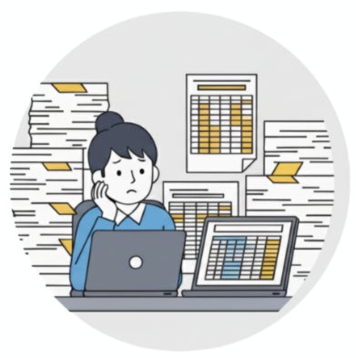 紙・Excel中心の業務を、ITツールでデジタル化・簡素化。二重入力や書類の散在を防ぎ、恒久的な業務効率化を実現します。