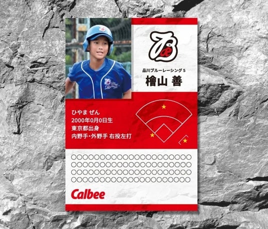 自分の写真を使って、まるで「プロ野球チップス」カードのようなカルビーロゴ入りトレーディングカードを作成できます。