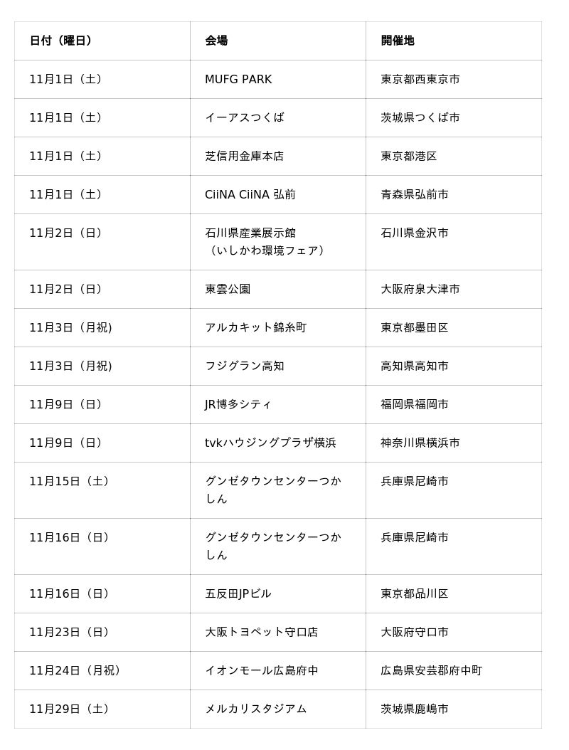 ※各会場により開催時間・雨天状況等が異なります。詳細はキッズフリマHP(https://kids-fm.jp/)にてご確認ください。