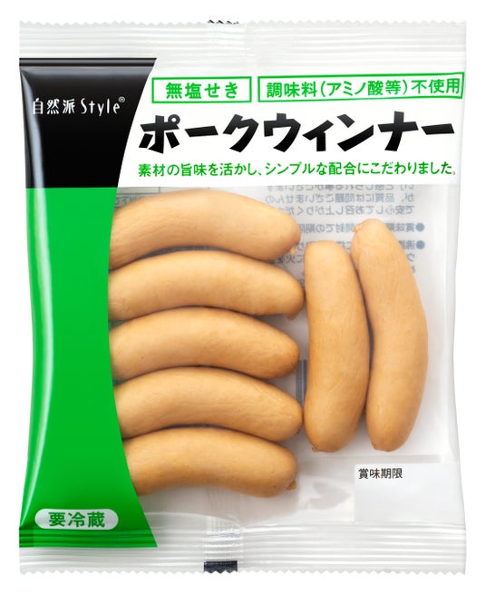 食品添加物にあたる発色剤(亜硝酸Na等)を使用しない「無塩せき」製法です。受注生産性で、一度も冷凍をしていない豚肉を使用することで、食品添加物に頼らない商品づくりを実現しています。もちろん子どもに人気の商品の1つです。