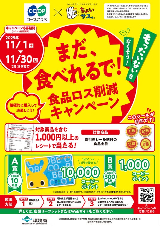 このたび、生活協同組合コープこうべ様(本部:兵庫県神戸市東灘区)と共同で、食品ロス削減をテーマとしたキャンペーンを2025年11月1日から展開します。