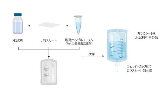本研究で開発した「QuickConc(R)」は、正の電荷を持つカチオン性物質を利用することで、負の電荷を持つDNAをガラス繊維シートへ効率的に吸着させるという新しい原理に基づいています。これにより、電源や特殊な装置を必要とせず、誰でも簡単にDNAを濃縮できます。