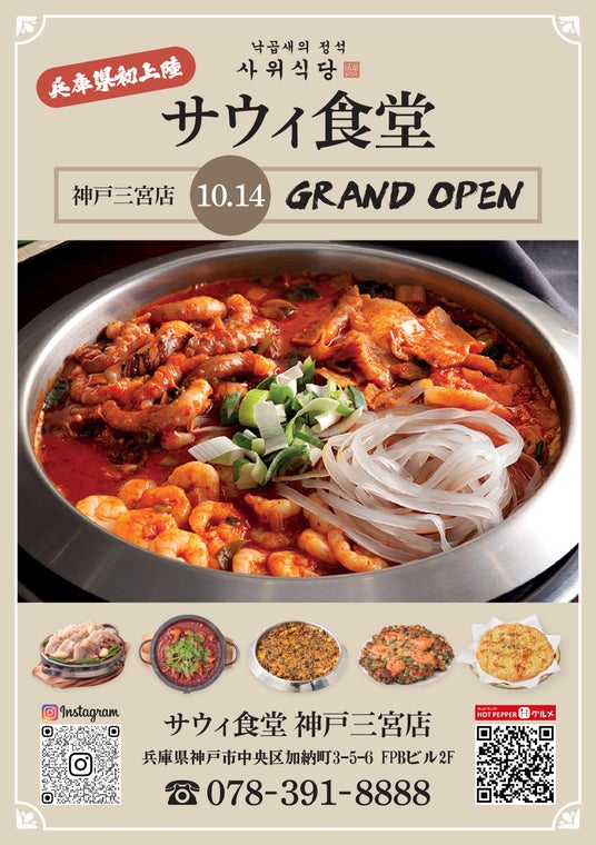 韓国No.1のナッコプセFC『사위식당(サウィ食堂)』日本本部を運営する株式会社un.s(本社:東京都新宿区百人町81丁目5-4東都ビル403 代表取締役:湯野聖加)は、サウィ食堂の日本4号店として、神戸三宮店を10月14日にオープンすることを決定いたしました!