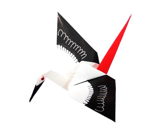 特別天然記念物に指定されているコウノトリは県のシンボル。平成17年9月には、野生復帰に向けた試験放鳥に成功しました。万博会場にも展示していたコウノトリの折り紙を、是非ご体験ください!