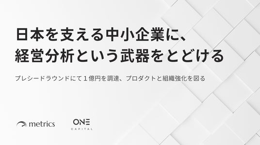 中小企業・士業向けクラウド経営分析「metrics」を運営する株式会社Metrics(本社:兵庫県神戸市、代表取締役:王浩南)は、One Capital株式会社(本社:東京都港区、代表取締役:浅田慎二)を引受先とする第三者割当増資により、プレシードラウンドにて1億円の資金調達を実施したことをお知らせいたします 。サービスのクローズドβ利用以来、クラウド活用をリードする会計事務所にご利用いただきながら改善を重ね、すでに100以上の士業事務所・法人から事前申込み(waitlist)をいただいております 。今回の資金調達により、2025年10月末に予定している正式リリースに向けたプロダクト開発体制の強化を加速してまいります 。