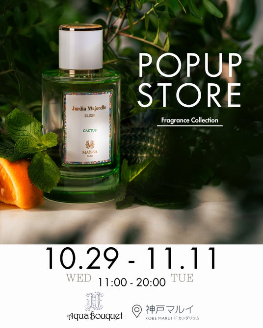 アクアブーケは、フランスをはじめとした海外のニッチフレグランスや日本発の香水ブランドを幅広く展開してまいりました。このたびのPOPUPストアは、関西エリアのお客様に新たな香りとの出会いを提供し、神戸から香水文化をさらに広げることを目的としております。