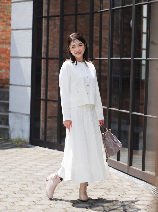 1.インナーのペプラム裾をのぞかせて今年っぽく