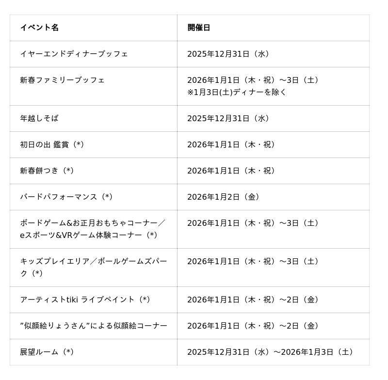 営業期間:2025年12月31日(水)~2026年1月3日(土)