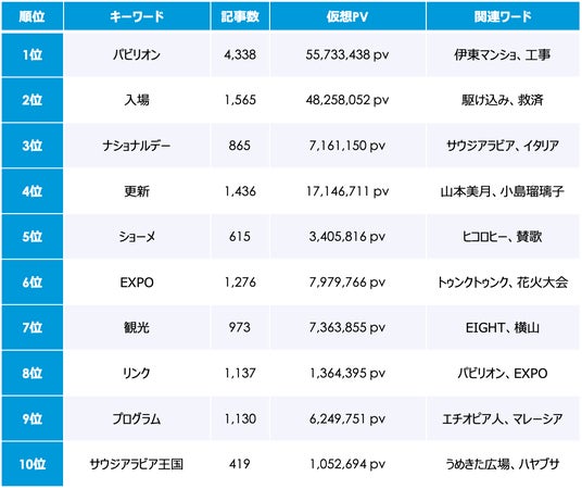 「大阪・関西万博」Qlipperトレンドワードランキング