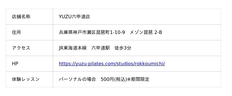 ▶︎https://yuzu-pilates.com/studios/rokkoumichi/