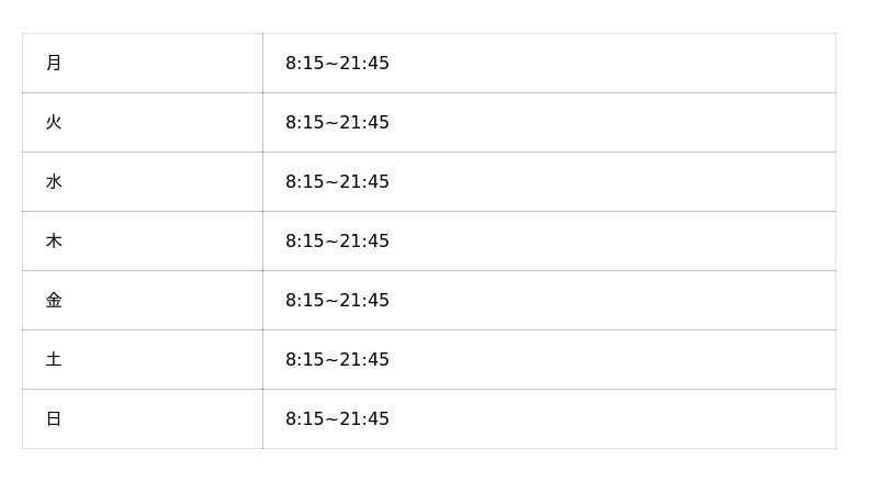 ※オープン時の営業時間となり、変更となっている可能性がございます。