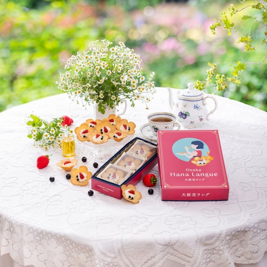 「大阪花ラング」は、見て可愛い、食べておいしい、お花のカタチのラングドシャ。2019年の発売以来、累計販売個数2,000万個を突破する、大阪土産の新定番です。