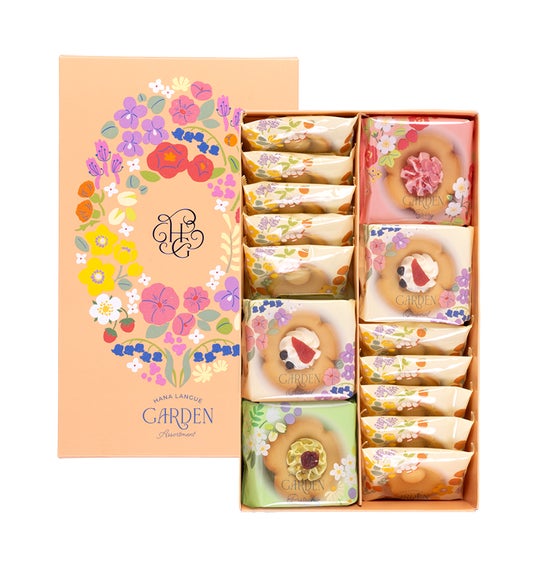 花クッキー缶フランスの伝統菓子ラングドシャのサクサクとした食感を追求しました。風味豊かな発酵バターと卵白をメレンゲに仕立て、繊細な火加減で焼き上げた絶妙な軽やかさが特徴です。