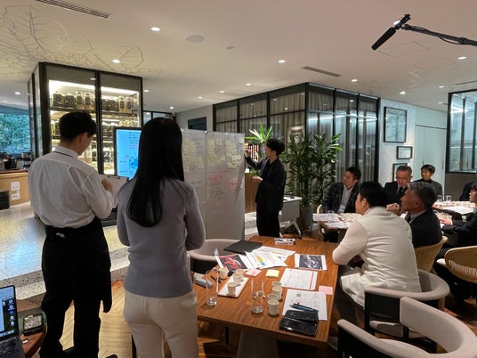 ・25年3月18日 試作品協議会 アカデミー土井講師が試乗にて体感した感覚(車内空間、アクセルワーク、ハンドリング)をもとにクラウンの“乗り心地”を水素焙煎コーヒーの“飲み心地”として表現した4車種のブレンドを開発、試作品を全員でテイスティング
