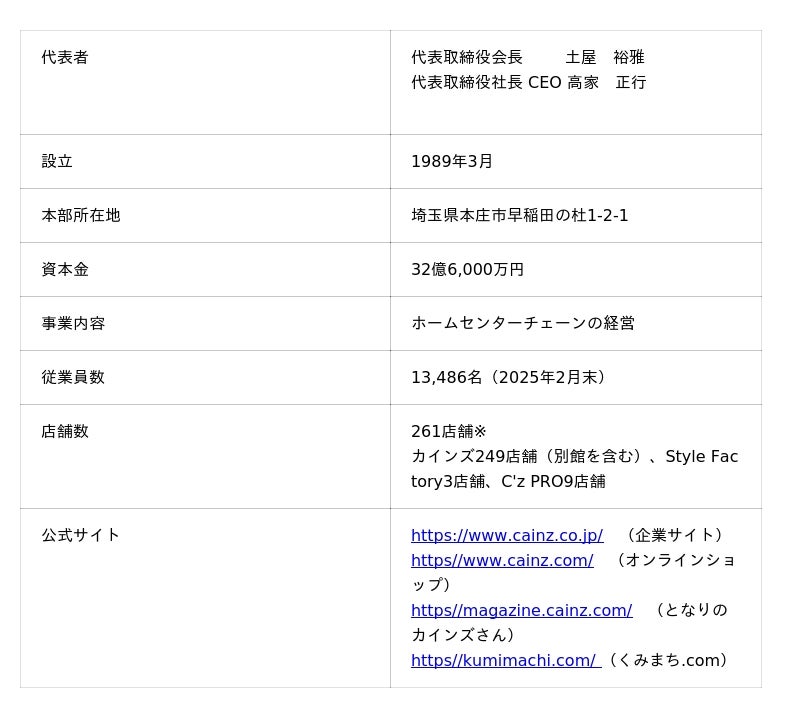 株式会社カインズは、29都道府県下に261店舗を展開するホームセンターチェーンです。