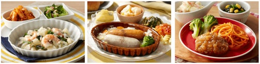 主力商品である「いつでも三菜」「いつでも五菜」の人気メニューの主菜を使用してボリュームをプラス。野菜は大きめにカットすることで、よりしっかりとした食感を感じていただけるよう工夫しました。「満足ディッシュ」は一皿で見た目も味わいも食べ応えも楽しんでいただけます。10月は5種類のメニューが登場。毎月新メニューを発売していきます。