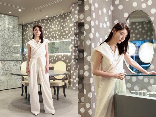 ドラマの撮影現場で一目惚れしたピアスを愛用しています。今回、力強いデザインから華奢なものまで、幅広い表情を持つジュエリーの数々に改めて魅力を感じました。「ダブルフィンガーリング」と「バロンネックレス」は、シンプルな装いが多い私にとって頼もしい存在になりそうです。自分の「好き」に忠実に選んだジュエリーは自信を高めてくれるはず。神戸店の落ち着いた空間で、ぜひお気に入りを見つけてください。