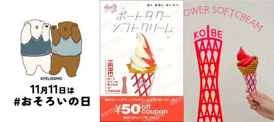 「神戸ポートタワー」の屋上デッキや高層高層の展望フロア、低層1階エントランスやチケット売り場を運営する株式会社フェリシモは、記念日「おそろいの日」に神戸ポートタワーをイメージした“赤い「ソフトクリーム」”が割引価格で楽しめるクーポン券のプレゼントを行います。神戸ポートタワーとおそろいの“赤い「ソフトクリーム」”とおそろい”の写真を撮影するなど、神戸ポートタワーで「おそろいの日」を機会に、ハッピーでしあわせな1日を過ごして、楽しい思い出を残して欲しいとの思いを込めて開催します。展望フロアへの入場チケットを購入した人が対象です。「ソフトクリームクーポン券」は展望フロアから帰着するエレベーターホールで配布(おひとり1枚)されます。「ソフトクリームクーポン券」は、神戸ポートタワー低層1階外側北も「Ready go round mini[レディーゴー ラウンド ミニ]」で使用でき、1枚で1個「ソフトクリーム」各種が定価より50円割引で購入できます。