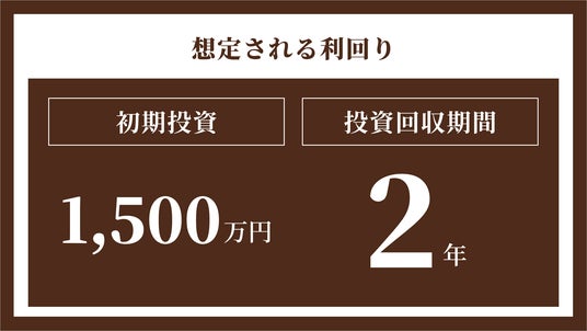 場所や店舗によって変動しますが、初期投資金額は加盟金などを含めて1500万円~、投資回収期間は最短2年~と設計されています。