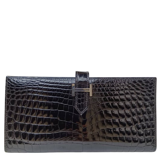 Hermes ベアンスフレ ニロティカス 二つ折り財布エルメス 長財布 シルバー金具 クロコダイル エキゾチックレザー メンズ レディース 黒 ブラック H 2004年