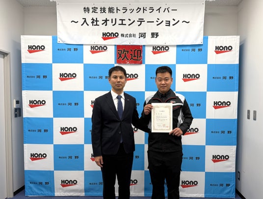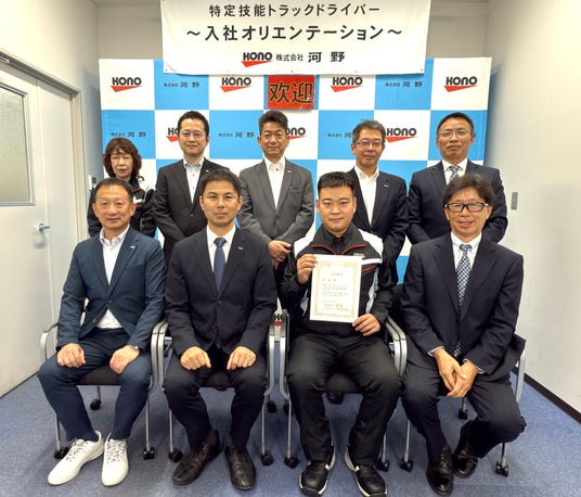 広島県を拠点に食品物流サービスを展開する株式会社河野(本社:広島県広島市、代表取締役:河野幹章)は、2025年11月6日(木)に、創業63年の歴史で初となる「特定技能1号(自動車運送業)」の在留資格を取得した中国人ドライバーの入社オリエンテーションを、兵庫県尼崎営業所にて実施しました。当日は報道関係者をはじめ、登録支援機構の担当者、社員など15名が参加しました。