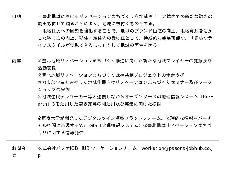 パソナJOB HUBは本取り組みを通して、地域に愛着を持ち関わり続ける都市部企業の誘致や、都市部企業と地域団体・人材との協業による事業共創の促進を支援することで、豊北地域の政策課題解決や 未来につながる関係人口の創出に貢献してまいります。