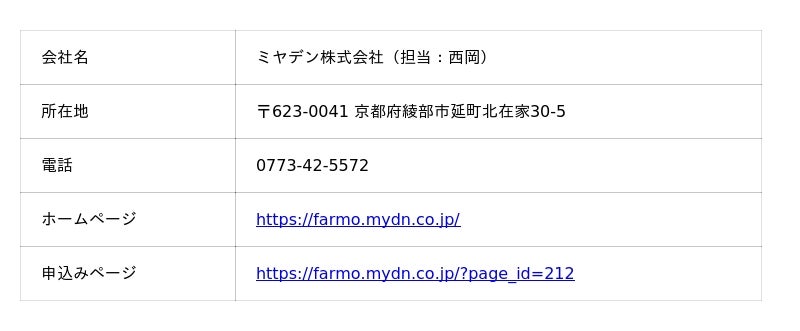本説明会では、京都府福知山市の現地水路にて、「アクアドライブ」の設置状態と実際の遠隔操作の様子をご覧いただけます。主催者であるミヤデン株式会社の担当者(FA制御盤製作で培った技術を地域に還元)と、メーカーである株式会社farmoの担当者が、システムの動作原理から操作方法、導入によるメリットまでを分かりやすく解説し、個別のご相談にも応じます。