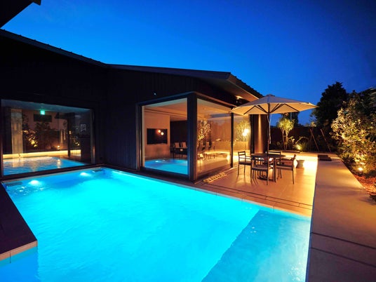 淡路島の中でも、とりわけ風光明媚な自然環境に恵まれた東浦地区にあり、客室は、庭園&プール付きの「スイートヴィラ」と1フロアに1室という贅沢な設計の「メイン・プレミアム」の2種類のスイートルームが揃い、いずれも全室にサウナとジェットバスを備えたハイランクで極上のステイと美食を約束いたします。なお、夕食は鉄板焼、寿司、BBQなど多彩な食事のレパートリーから選べます。
