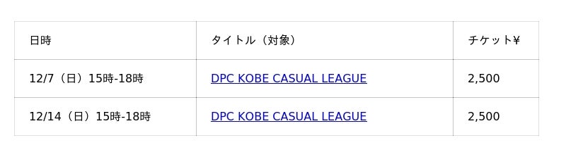 【リリース概要|始めたばかりの方歓迎!DPC KOBE CASUAL LEAGUEを12月に開催】