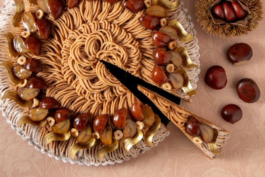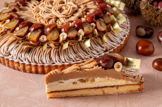 和栗と洋栗をあわせたモンブランクリームを、栗の食感を引き出したマロンシャンティ、カシスコンフィチュール、香ばしいタルトに合わせました。口の中に広がる栗の豊かな風味をぜひお楽しみください。