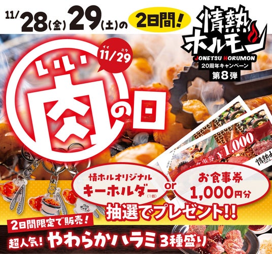 情熱ホルモン20周年企画第8弾!「いい肉の日フェア」はプレゼント企画と限定メニューを展開