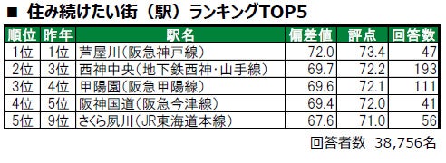 ■住み続けたい街(駅)トップは、3年連続で芦屋川