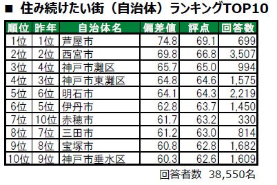 ■住み続けたい街(自治体)トップは、5年連続で芦屋市