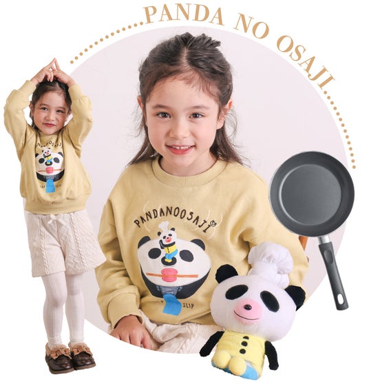 イエローのトレーナーには、絵本の表紙にもなっている「フライパンダ」を大胆にプリント!