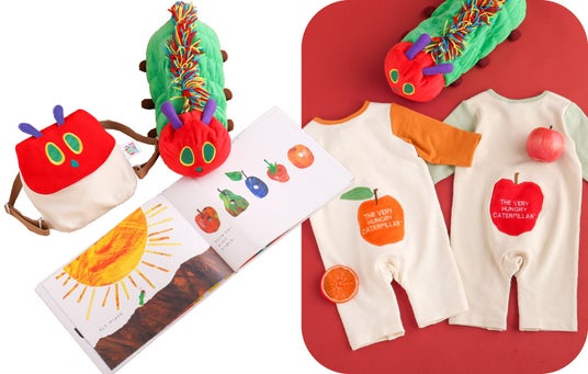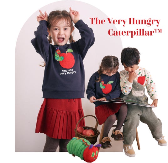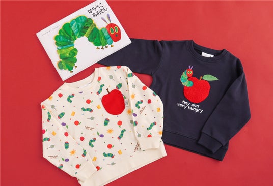 『はらぺこあおむし』『パンダのおさじとフライパンダ』『おたすけこびと』の3つの人気絵本のモチーフがかわいい子ども服になりました!