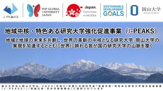 - 岡山大学 文部科学省「地域中核・特色ある研究大学強化促進事業(J-PEAKS)」に採択~地域と地球の未来を共創し、世界の革新の中核となる研究大学:岡山大学の実現を加速とともに世界に誇れる我が国の研究大学の山脈を築く~