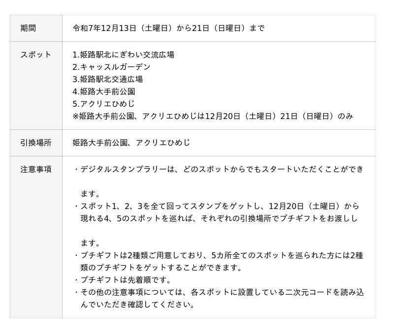 「出会いのまち姫路」を掲げているため、本プロモーションではメインターゲットをカップルや若年女性層に定め、これまでにない新たなクリスマスシーズンの雰囲気を中心市街地に醸成することを目指します。