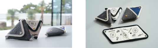 シャチカラーの播州織オリジナルコインケース(イメージ) 「播州織」と「杉原紙」を使用したコインケース(イメージ)