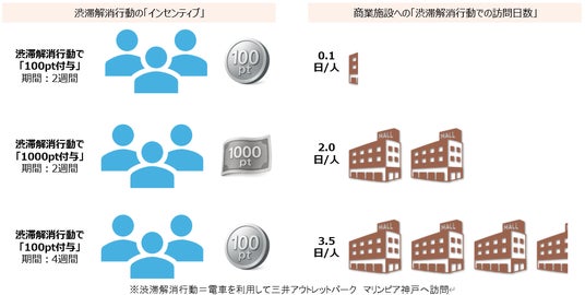 本施策の実施に先立ち、スマートライフパスでは、2025年5月12日~7月11日に、スマートライフパス会員を対象に、スタンプラリーを使用したインセンティブ付与が交通混雑の緩和に資する行動を促すのか、その仕組みの有効性を事前検証しました。検証の結果、参加者に対して一定のインセンティブを付与することで、電車を利用した訪問頻度が向上する効果が見られました。さらに、一度インセンティブを付与すると、その後インセンティブの水準を下げた場合でも、電車を利用した訪問は継続される効果が確認されました。この事前検証の結果から初期段階で適切な動機づけを行うことで、行動の定着につながる効果を確認しています。