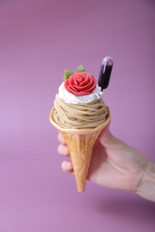 まずは和栗餡そのものの味わいをお楽しみいただき、その後アイスと合わせてまろやかさを堪能し、最後にカシスソースをかけることで、甘さに爽やかな酸味が加わり、味わいが華やかに変化します。今しか味わえないフラワーアイス是非お召し上がりください。