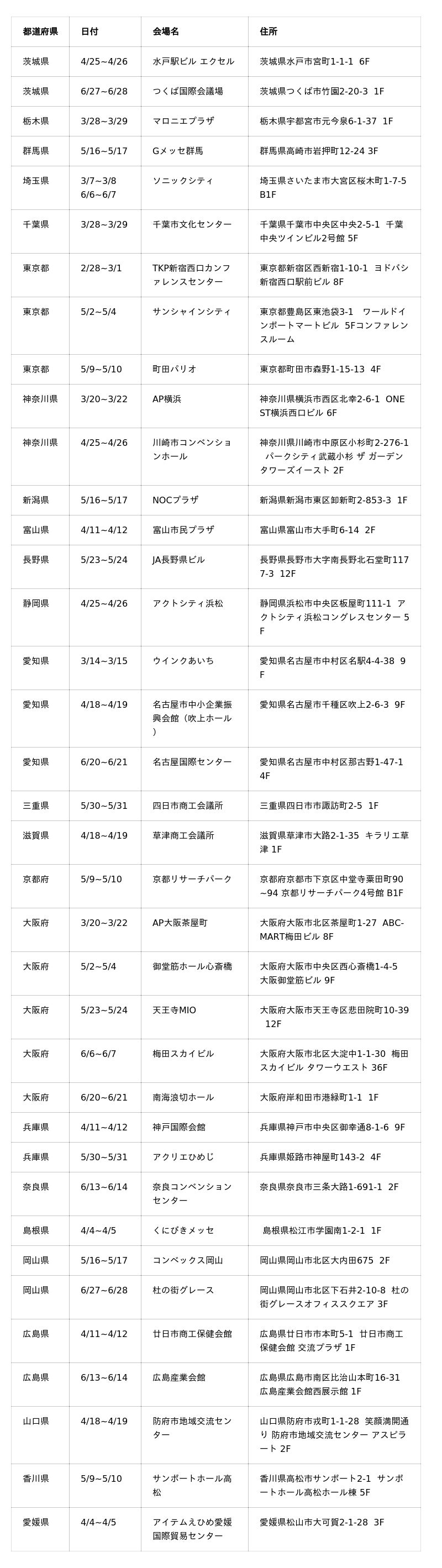 各会場の詳細