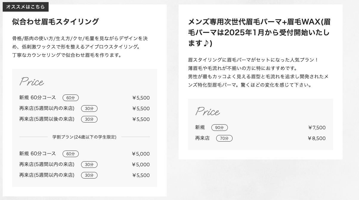 ■メンズ眉毛サロン 眉ラボでは、2種類の施術をご用意